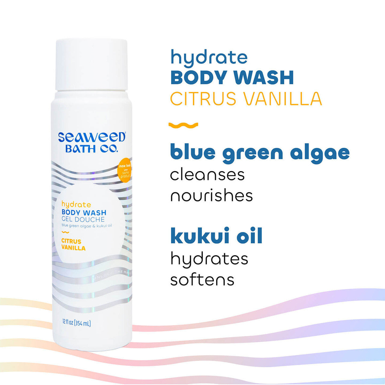 Let a wave of nourishing hydration wash over you. With vitamin-rich blue green algae and a nourishing blend of Hawaiian kukui oil, coconut oil and sustainably harvested Atlantic seaweed, this replenishing body wash delivers essential moisture, so you'll be ready for whatever drifts your way.