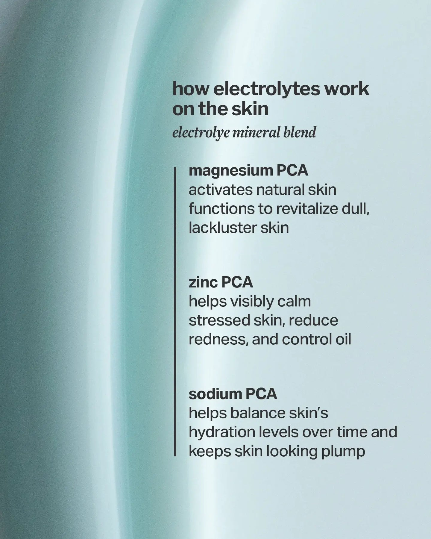• Electrolyte blend replenishes and supports skin’s natural moisturizing factors