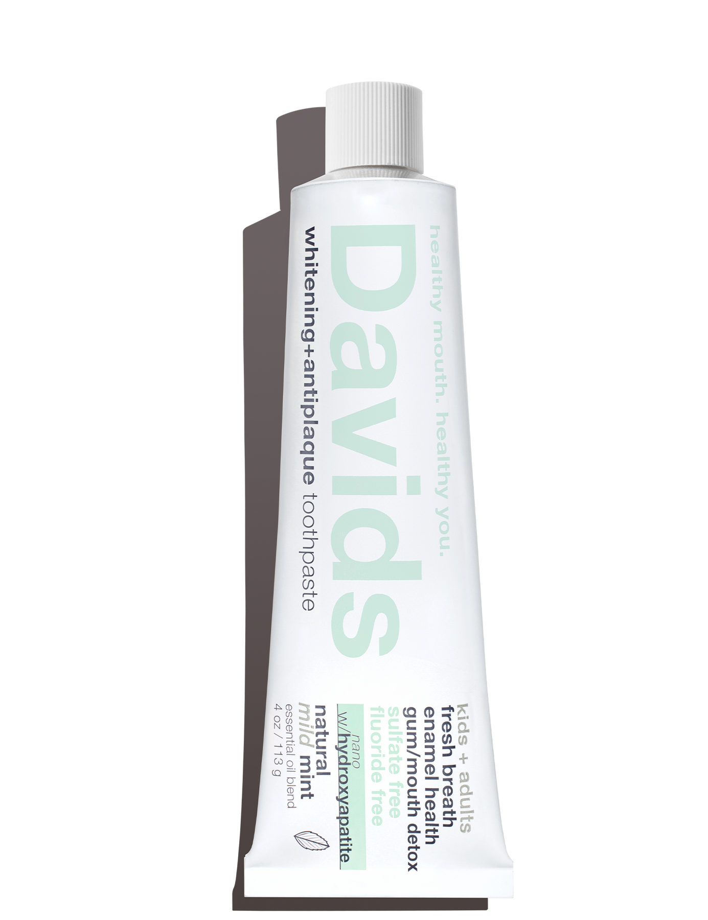 One premium toothpaste, designed for every smile in the family. Davids Kids + Adults Nano-Hydroxyapatite Premium Toothpaste delivers effective natural whitening, antiplaque care, and long-lasting fresh breath—all in a gentle mild mint flavor ideal for sensitive palates. Powered by nano-hydroxyapatite, a safe and effective fluoride alternative that helps remineralize enamel, this clean formula is fluoride-free, SLS-free, and made with 98% USA-origin ingredients. USDA Certified Biobased and proudly made in the USA, it’s a toothpaste you can feel good about—at any age.