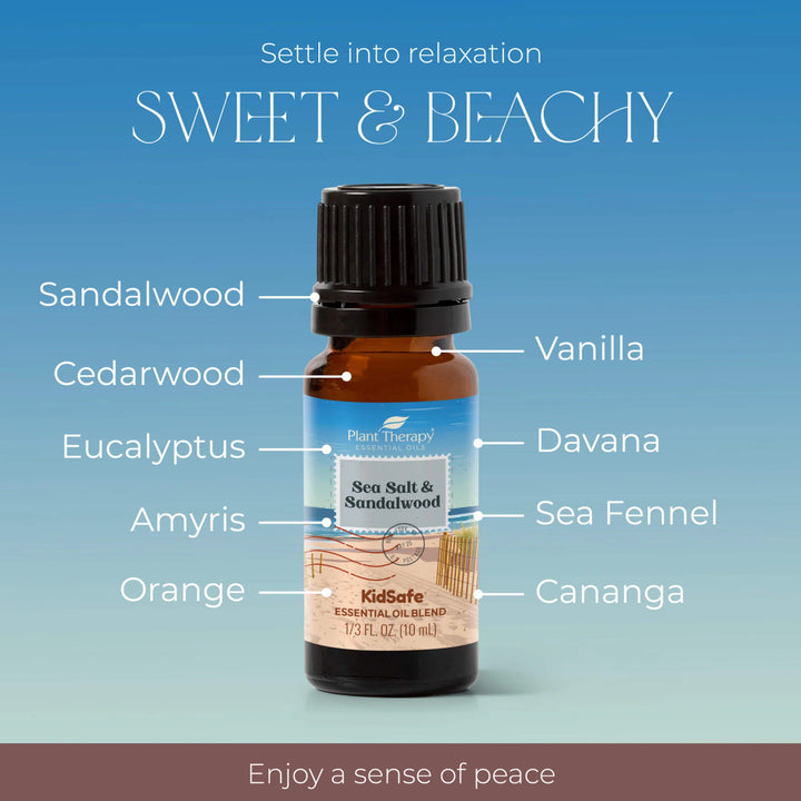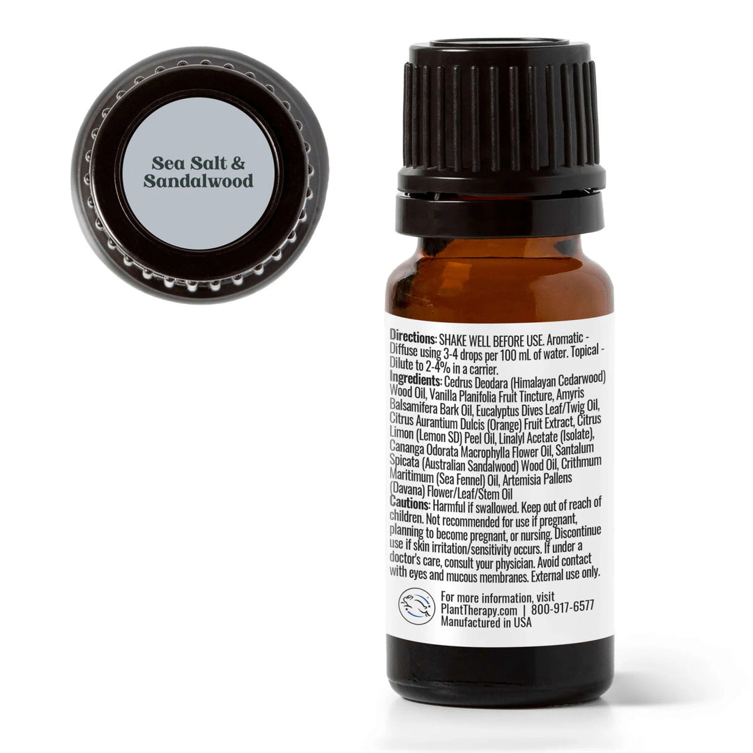 Settle into relaxation with the sweet, beachy scent of Plant Therapy's Sea Salt & Sandalwood Essential Oil Blend. Revitalizing, crisp notes of Eucalyptus and Sea Fennel bring to mind fresh seaside air against the rich, woody tones of Sandalwood, Cedarwood, and Amyris. Powdery florals and Vanilla infuse a light tropical touch for a sense of fun and romance. Diffuse to enjoy the peaceful atmosphere throughout your home or create your own unique personal fragrance by adding this blend to a carrier oil or our Unscented Body Cream with Argan.